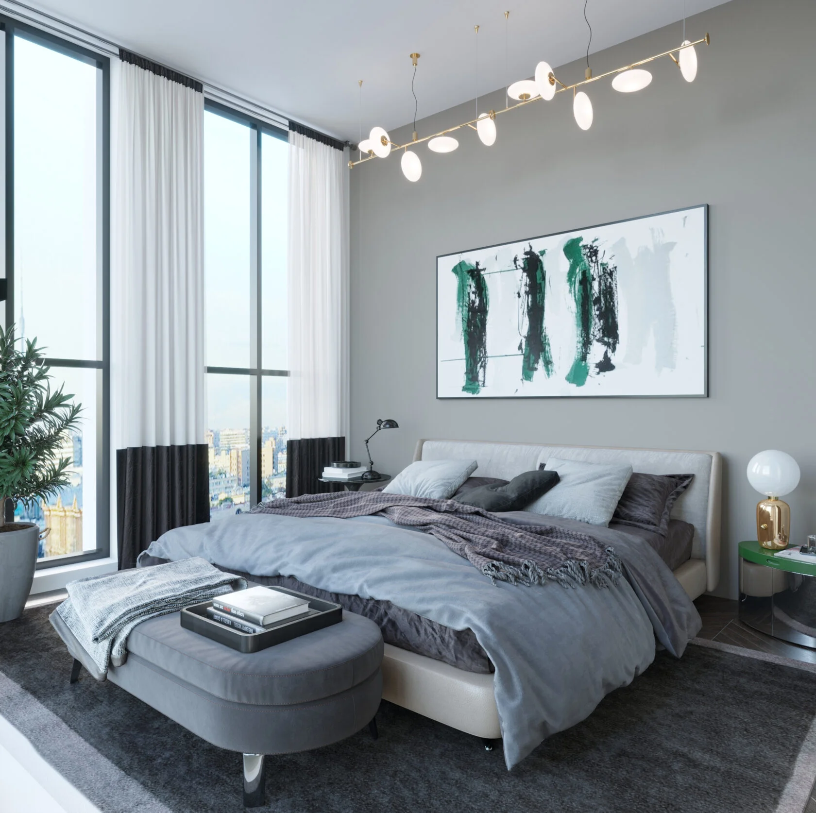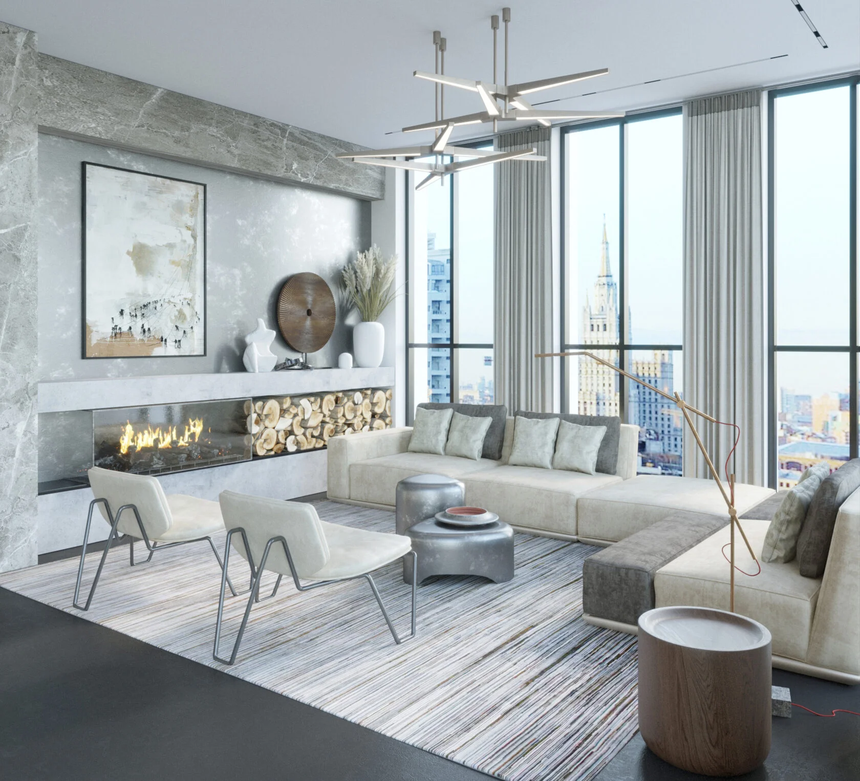 В итоге — квартира, где главные роли у света и линий. Утром будит панорама города, вечером звучат мягкие отражения и огонь камина. Спокойный, взрослый интерьер, который не кричит — он дышит.